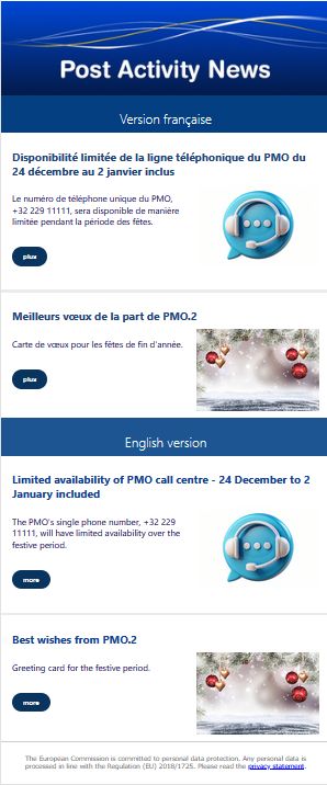 Disponibilité limitée de la ligne téléphonique du PMO du 24 décembre au 2 janvier inclus